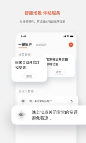 该应用立足真实用户场景,通过接入智能硬件设备以及设置自动化场景联动,为用户提供便捷、智慧的家居生活体验。