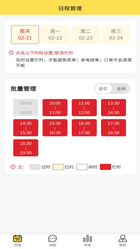 1、【时间】: 技师可以自主选择关闭或者打开自己的接单时间,方便自由。