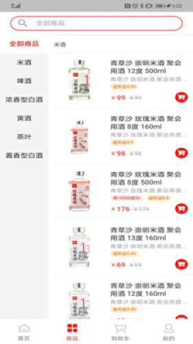 4、一键选酒:热卖好酒、名优白酒、红酒直采、喜宴用酒。