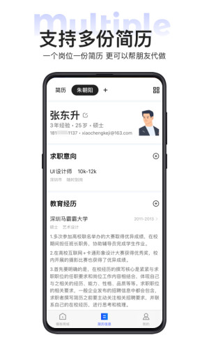 - 支持创建多份简历,方便您针对不同的公司和岗位,提供针对性更强的简历。