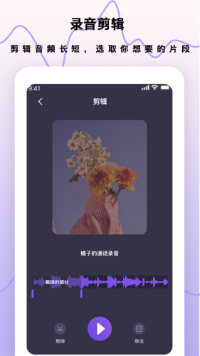 4,录音剪辑:支持裁剪本地音频文件,剪切需要的音频部分导出文件