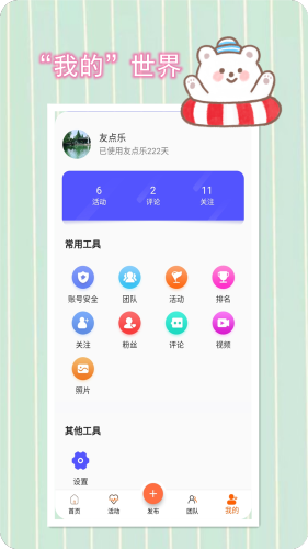 ·缤纷团队 由你选择:学生可通过团队功能,与志同道合的朋友组建团队,参加以团队为主的各项活动。