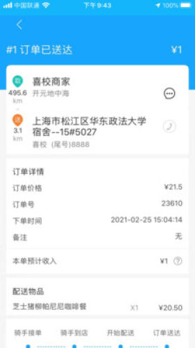 3. 喜校专送基于高德地图可为骑手提供最优配送路线,保障配送时效。