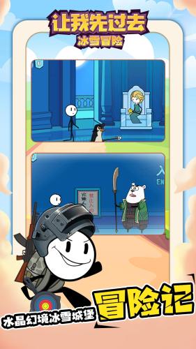 让我先过去,一款画风非常魔性的火柴人冒险闯关游戏。这里的主角是可爱的火柴人兄弟,继承魔性沙雕画风,丰富的吃鸡冒险关卡挑战,和火柴人一起开启爆笑冒险旅程吧。