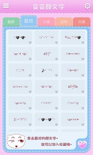 变变颜文字安卓版是一款非常可爱的颜文字,有种各种搞笑、卖萌的字体表情,非常适合女生使用,当然男生也能使用....