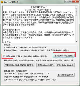 3、再运行"02EasyShu插件安装包2.863.exe"程序,点击自动判断 Excel 位数安装;
