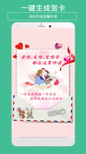 一款可制作电子节日贺卡的实用软件,丰富的模板,精美的设计,随你心情自定义祝福话语,一键保存分享给那个TA。