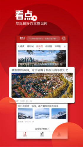 重庆客(文旅资讯)app,重庆文旅资讯信息实时发布,分享优质信息,发现文旅之美。来重庆客app,随时掌握本地教育、生活、文学、旅游、历史文化等多方面信息,关注本地动态。