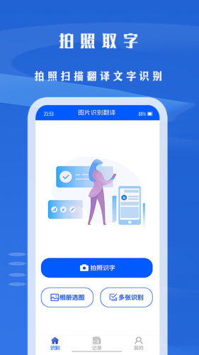 文字识别王是一款为用户免费提供OCR拍照文字识别,集多语言翻译的多功能超强版软件,