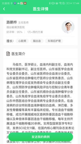 4、拥有详细的医生介绍,包括资历简介、擅长标签、好评率等,方便患者进行选择。