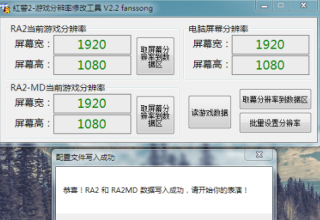 4、最右侧取游戏分辨率是指:取屏幕分辨率到RA2和RA2MD内的数据库