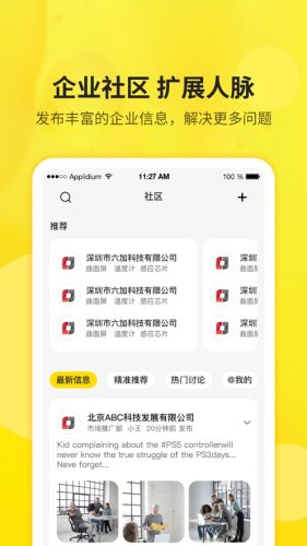 企业可以发布文本、图片或视频等信息,与其他企业之间交流。