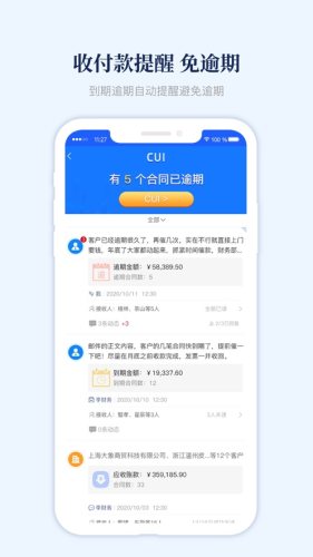 逾期提醒:提醒业务人员即将到期的应收/付账款以及逾期的应收/付账款