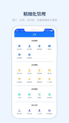 应收应付:以实际业务场景为依据,将客户/供应商、合同、收付款、发票等环节紧密串联起来,做到精细化管理