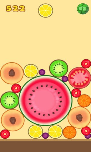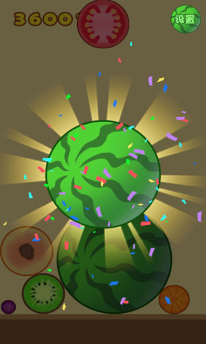 3、同样的果实可以合并升级,直到合成一个大西瓜。
