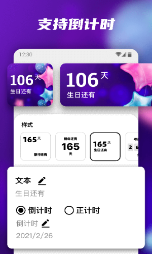 花季传媒支持添加倒计时小部件,用于提醒和时间管理,倒计时可精确到秒。您可以自定义即将到来的重要事件,例如:假期,生日,纪念日,聚会,感恩节,圣诞节,万圣节,情人节,考试,目标等。