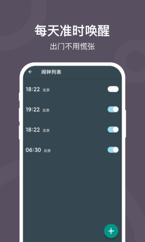极简闹钟app,清爽、简约的手机闹钟,自定义闹钟时间、铃声、时区城市等功能,全球时间轻松设定,功能全面,一键添加闹钟,按时提醒,为用户带来更多便利。