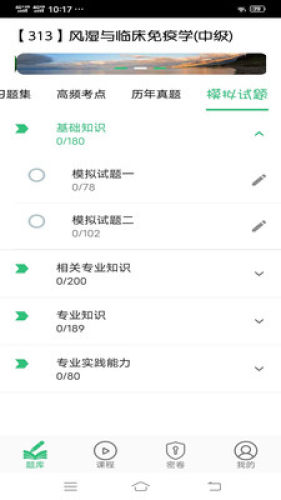 历年真题模块,历年真题包括近几年全真考试卷,全真模拟卷,实战模拟考试;