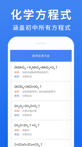 初中化学大全包括了化学方程式、化学知识大全、化学中考试卷等内容,同时还有离线阅读和收藏功能。