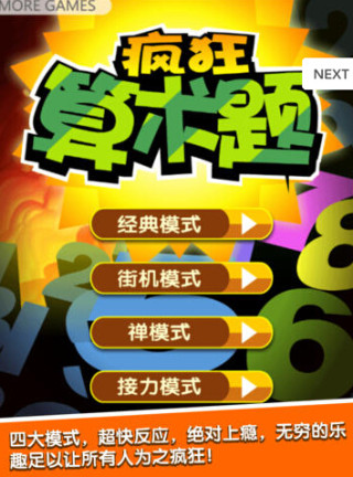经典模式、街机模式、禅模式、接力模式,加减乘除法样样齐全!开始游戏,争取最高分吧!