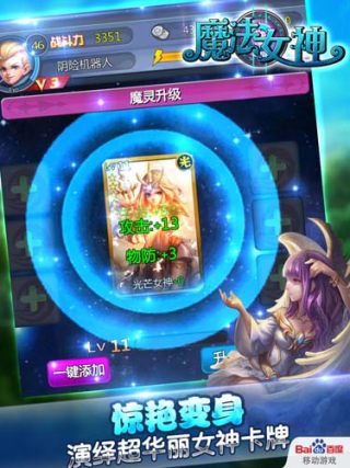 魔法女神是一款由百度移动运营的魔幻卡牌手游,游戏采用精致的3D场景,华丽的技能释放体验,带你一起感受指尖的炫斗,独特的组队卡牌玩法,还有实时的语音沟通让游戏战斗畅通无阻。魔法女神,魔法世界为你而战快来加入吧!