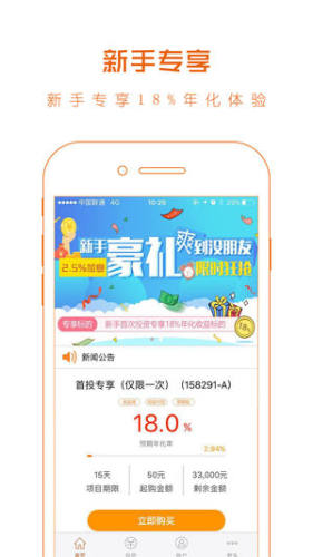 谷仓理财是一款专业的移动理财神器,定期产品年化收益11%~15%,新人注册即享18%年化收益。