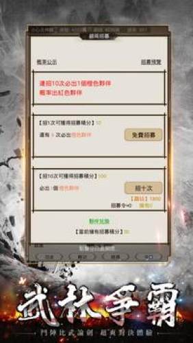 3、热血似火山沸腾,激情若瀚海汹涌,欲望如深渊无止境,打坐修炼、府邸升级、八卦阵法、五行提升,超多玩法,助你一统江湖。