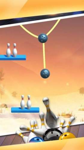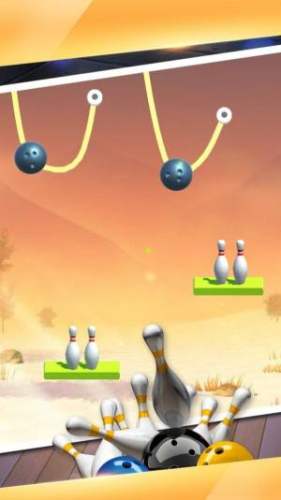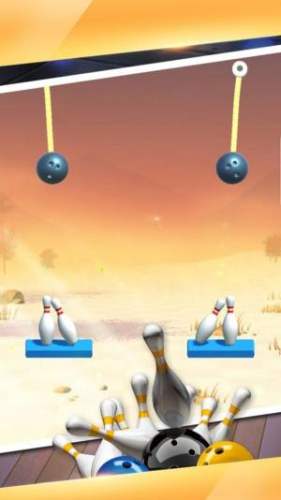 3、割断绳子,保龄球会掉下来,然后顺着你的思路进行滚动,击倒所有的瓶子。