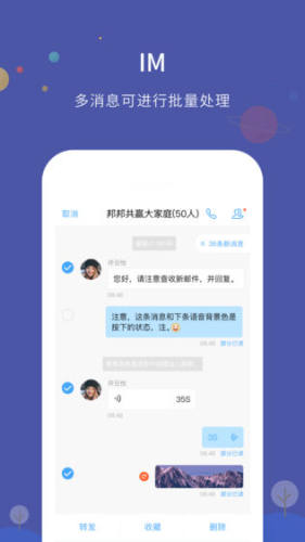 1、提供开放多元的企业即时通讯功能,让工作沟通更顺畅。 支持建立企业群,聊天除了发送文字、图片、表情之外,还支持语音和视频聊天;阅后即焚、防截屏、消息撤回,聊天不留痕迹防止信息泄露;群聊文件统一汇总,领导重要讲话pin到小黑板,落地执行更便捷。
