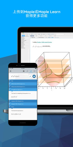 避免在使用Maple桌面版时的转写错误:避免在向Maple转写数学表达式时可能出现的错误,使用应用拍照并将结果上传至Maple,即可进行进一步探究和可视化。