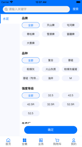1.水泥商品筛选,对注册区域内天山旗下水泥制造厂的产品进行筛选。