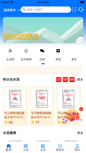 6.积分系统,购买水泥可以累计积分,用于换购奖品。