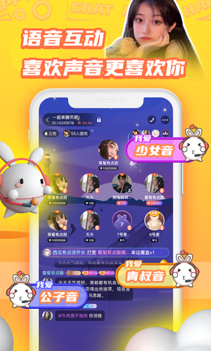 橘兔星球app,游戏开黑语音聊天交友;来橘兔,寻找相同频率的心动;聊天交友,跟心动的TA打个招呼主题派对,邂逅最懂你的人炫酷礼物,让TA感受到你的暖心;语音互动,喜欢声音更喜欢你。