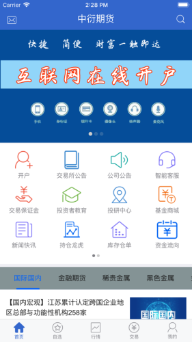 这款app集在线开户、期货交易、期权交易、公告资讯、基金代销等为一体,