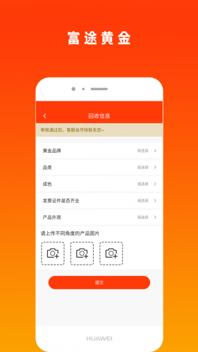 4、图文回收,申请回收的时候可以在富途黄金app自主编辑文字信息、上传黄金图片。