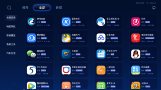 ◆应用:点击导航栏“应用”进入应用页面,这里有市场上所有的应用,按系统工具、影音播放、车载经典等进行分类,并且对这些类别的应用进行栏最热和最新的排序,一目了然,可以快速找到目标应用。