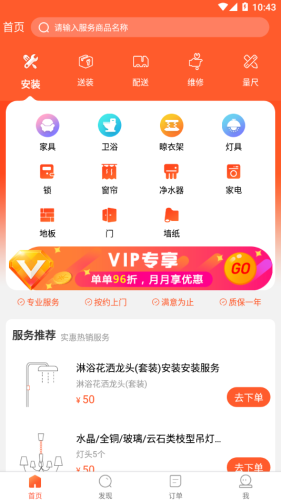 聚合百万优质师傅,服务品类包括卫浴、晾衣架、家具、窗帘、灯具、智能锁、家用电器等,