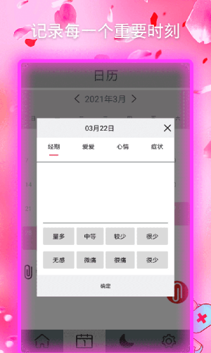【日历标记】日历标注经期日子,彩色高亮显示,日历还能记录心情日记