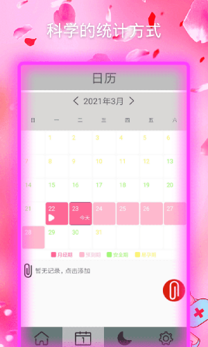 【记录大姨妈安全期排卵期月经期】只要简单记录大姨妈月经期,经期天数,最近一次经期日期,就能自动推算大姨妈安全期月经期、排卵期,排卵日,避免尴尬。