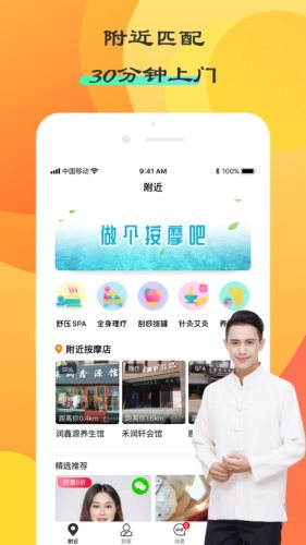 按了么软件,可靠的同城上门按摩服务平台,涵盖按摩、艾灸、刮痧、足疗等多种服务,在线预约,就近匹配,大量技师可供选择,享受优质上门按摩服务。