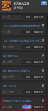 4.在战天辅助工具中“启动”“战天筱剑|战天|主线任务-自动喊话”