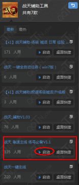 4.在战天辅助工具中“启动”“战天急速主线练号必备工具”