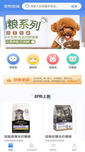 宠物商城囊括市面上大部分宠物用品、宠物保健品,涉及的宠物种类比较全面;