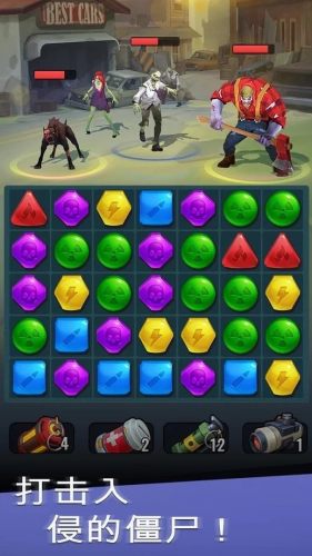 2、三消玩法集合战斗系统,帮助英雄打败丧尸,可以解锁角色隐藏技能。
