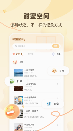 3、打卡和TA一起完成爱的100件小事,完成后添加至甜蜜空间,可以随时查看
