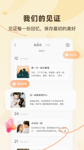 4、时间轴可以查看一起做的点滴,还可以写下当时发生的故事