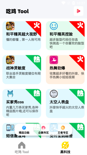 吃个鸡app最新版正式改名为吃鸡tool,新版本能够解锁和平精英游戏超广视角,而且还能自定义画质分辨率,超高清120帧让你免费使用,还有帧率解锁、音质解锁、参数模拟等功能,帮助玩家更加轻松的吃鸡,有需要的朋友欢迎下载体验。