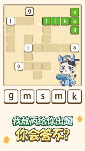 2、单词王者是一款闯关益智小游戏,运用你的英语知识积累,将字幕填充到棋盘中的空白方块中,