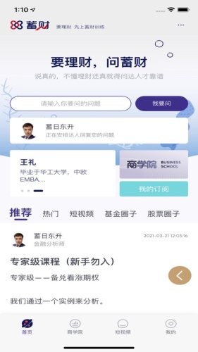分别从系统、达人和培训三大模块,为用户提供全方位的财商的学习,