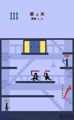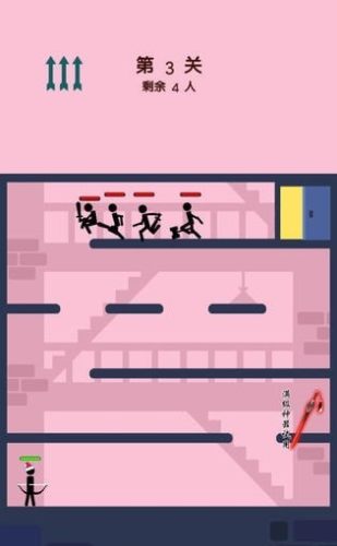 1、游戏的画风非常的简洁,游戏中的人物都是一个个的火柴人,除了你都是坏人